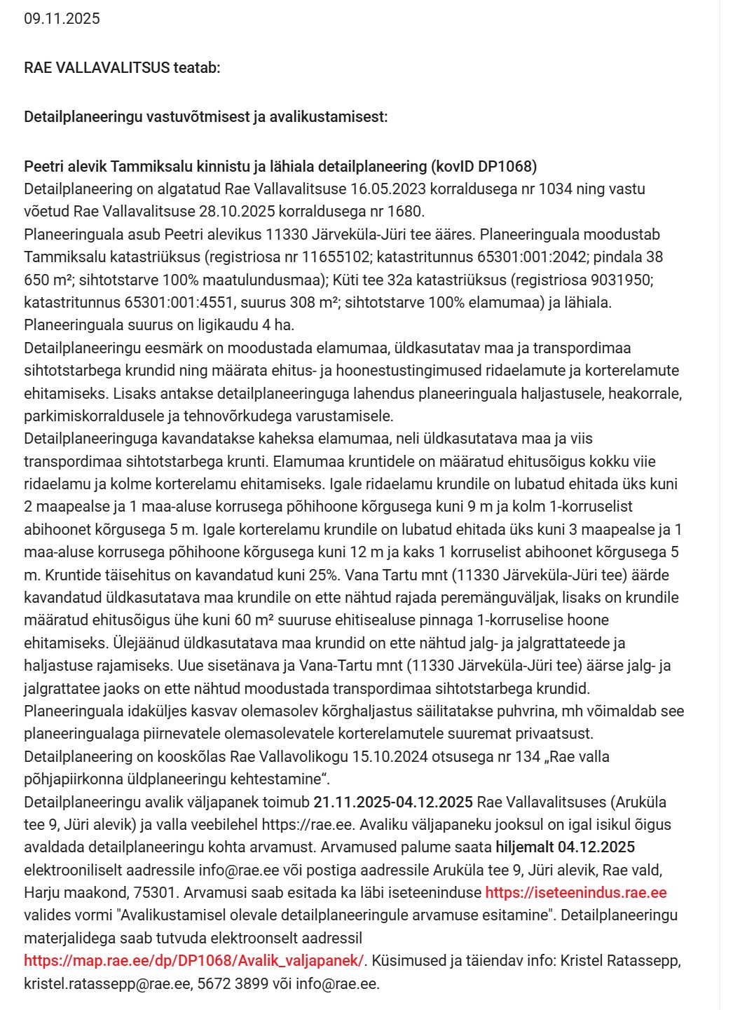 11/10/2025 9:47 AM 458477 DP1068_Tammiksalu kinnistu dp vastuvõtmine ja avalikustamine_Rae valla koduleht_09.11.2025.jpg