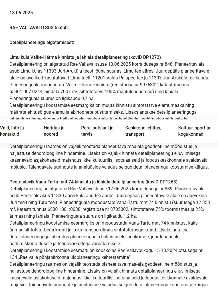 6/25/2025 9:14 AM 290924 DP1263 Vana-Tartu mnt 74 algatamine_Rae valla koduleht_18.06.2025.jpg