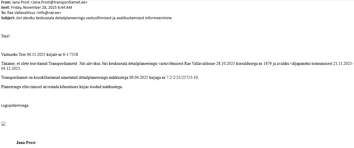 11/6/2025 3:30 PM 183943 DP1281_asutused_Jüri aleviku keskuseala dp vastuvõtmisest ja avalikustamisest informeerimine.pdf