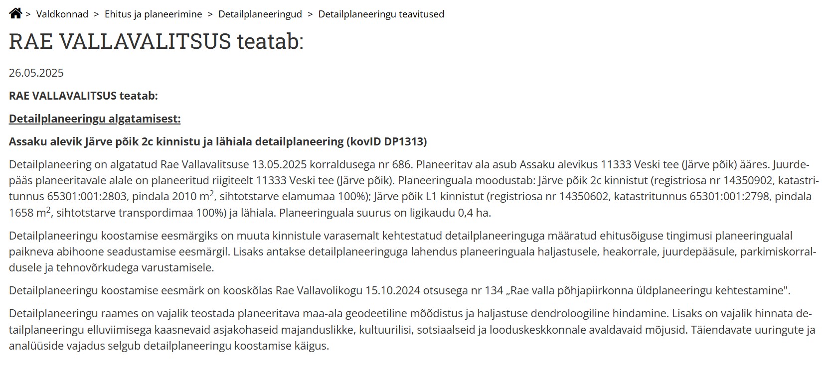 5/28/2025 7:45 AM 307096 DP1313_Järve põik 2c algatamine_Rae valla koduleht_26.05.2025.jpg